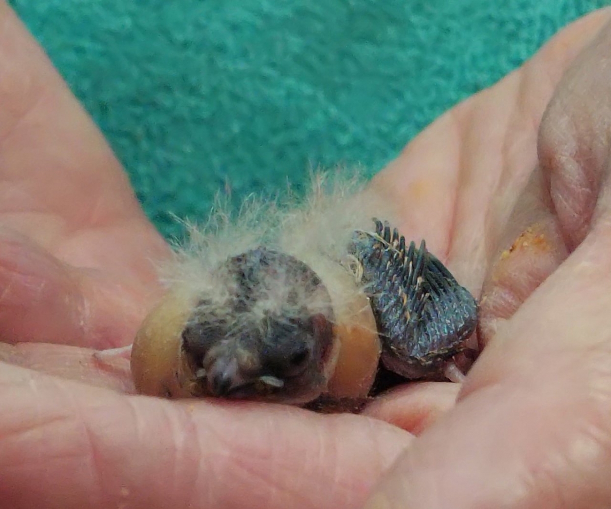 ペレットをついばみ始めましたが、まだ、1日に2~3回、パウダフードをお湯で溶いてシリンジで与えています。